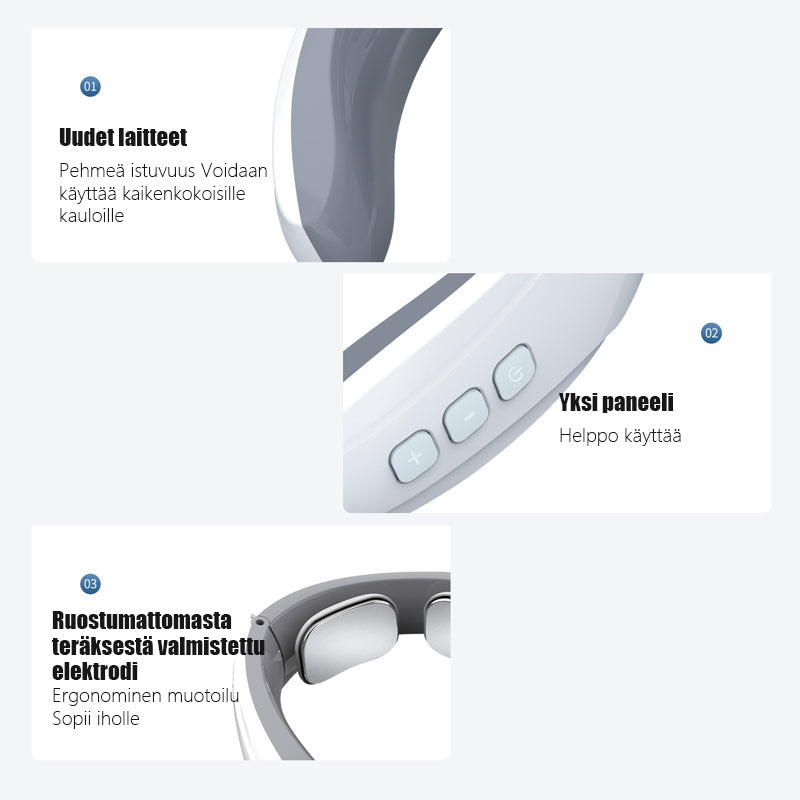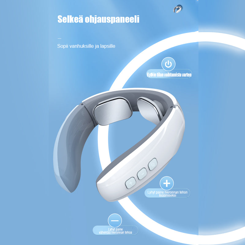 Sano hyvästit kohdunkaulan spondyloosille! Ladattava niskahierontalaite mukautuu täydellisesti kaularangaan ja hieroo niskaa ja hartioita.