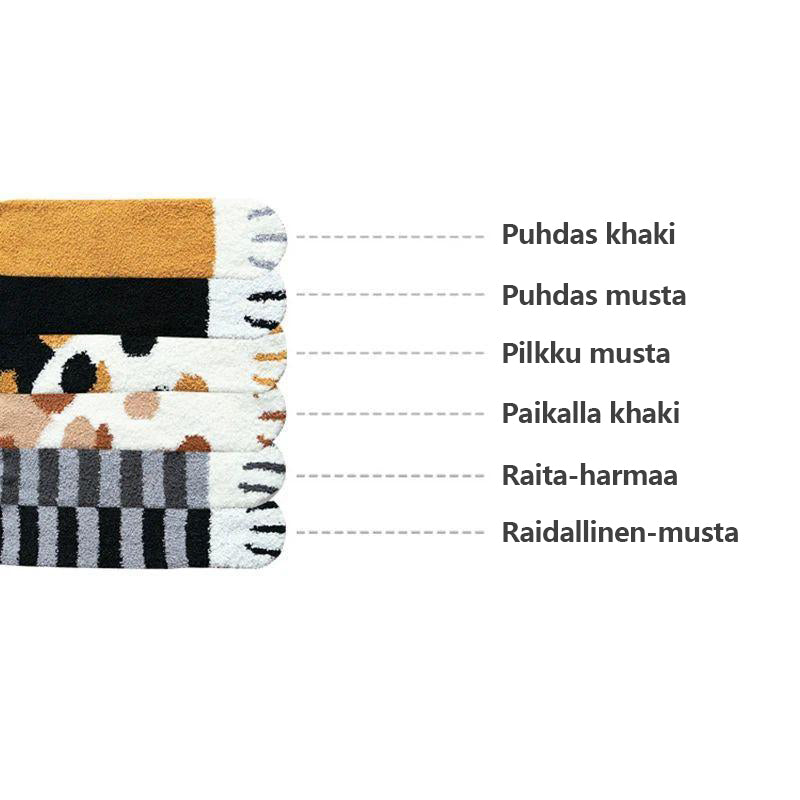 • Väri: Mustat raidat, Harmaat raidat, Mustat pisteet, Khaki pisteet, Musta, Keltainen