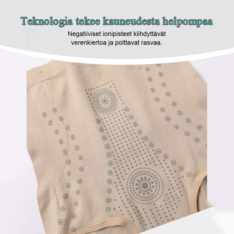 • Ainutlaatuisten kuitujen säteilevien ionien ja muotoiluvaatteiden voiman avulla voit laihtua, polttaa rasvaa ja muotoilla takapuolta. Tämä on mahdollista, koska ionit keskittyvät vyötäröllesi ja kohdistuvat vatsan rasvaan. Tällä muotoiluvaatteella on puristusmuotoiluominaisuudet.