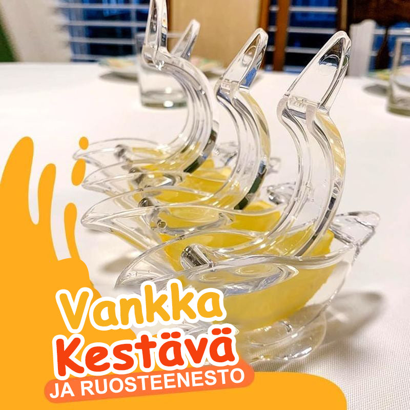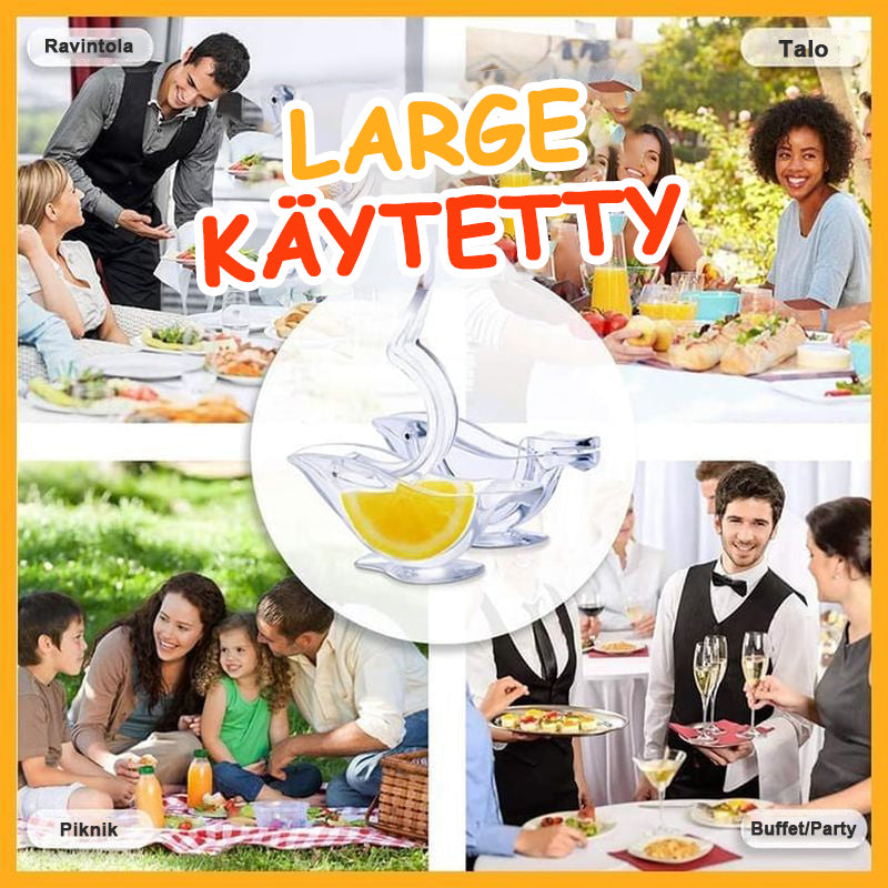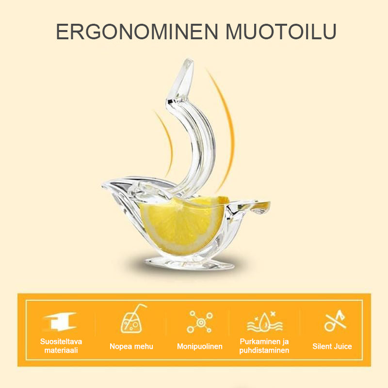 Manuaalinen läpinäkyvä mehupuristin pienen linnun muodossa
