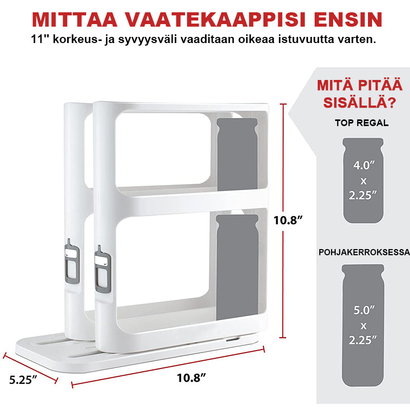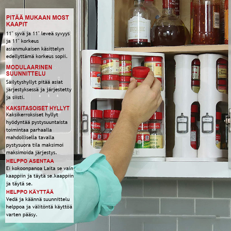 Modulaarisen ja kaksikerroksisen suunnittelun ansiosta hyllyt saavat kaiken irti kaappitilasta. Kaksi säilytystelinettä maksimoivat pystysuoran tilan, joten voit helposti säilyttää tavaroita ja säästää tilaa.