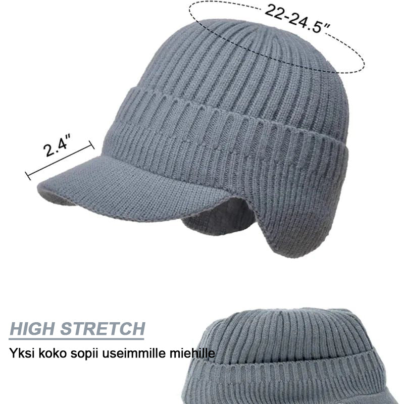 Ulkokäyttöön lämmin korvasuojaus neulottu lippalakki