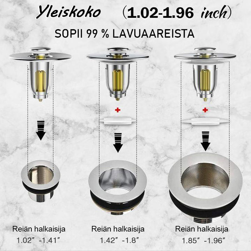 {"id":6818829336660,"title":"Pop-up pesuallasjätteet Viemäriliitin","handle":"pop-up-pesuallasjatteet-viemariliitin","description":"\u003cdiv style=\"text-align: center;\" data-mce-fragment=\"1\"\u003e\u003cspan style=\"color: #ff2a00;\" data-mce-fragment=\"1\"\u003e\u003cstrong data-mce-fragment=\"1\"\u003eÄlä enää murehdi pesualtaan suodattimen koosta!\u003c\/strong\u003e\u003c\/span\u003e\u003c\/div\u003e\n\u003cdiv data-mce-fragment=\"1\"\u003e\n\u003cspan data-mce-fragment=\"1\"\u003e\u003cstrong data-mce-fragment=\"1\"\u003e\u003c\/strong\u003e\u003c\/span\u003e\u003cbr data-mce-fragment=\"1\"\u003e\n\u003c\/div\u003e\n\u003cdiv data-mce-fragment=\"1\"\u003e\u003cimg alt=\"\" src=\"https:\/\/cdn.shopify.com\/s\/files\/1\/0247\/5143\/9956\/files\/1_ae444b97-5c09-4788-8ad1-e3e1c4647259_480x480.jpg?v=1677661560\" style=\"display: block; margin-left: auto; margin-right: auto;\"\u003e\u003c\/div\u003e\n\u003cp data-mce-fragment=\"1\"\u003e\u003cspan data-mce-fragment=\"1\"\u003ePop up -altaan tulppa sopii 99 %:iin pesualtaasta, jonka tyhjennysaukot ovat 1\/2\" - 2\". Riippumatta tyypistä pesualtaan, pesualtaan viemäriin tai suihkualtaan viemäriin, se toimii minkä tahansa kanssa.\u003c\/span\u003e\u003cbr data-mce-fragment=\"1\"\u003e\u003cbr data-mce-fragment=\"1\"\u003e\u003cspan style=\"color: #ff2a00;\" data-mce-fragment=\"1\"\u003e\u003cstrong data-mce-fragment=\"1\"\u003eModernisoi kylpyhuoneesi innovatiivisella turhamaisella viemärillämme.\u003c\/strong\u003e\u003c\/span\u003e\u003cbr data-mce-fragment=\"1\"\u003e\u003cbr data-mce-fragment=\"1\"\u003e\u003cspan data-mce-fragment=\"1\"\u003ePop-up tiskialtaan tulppa on suunniteltu sisäisellä hyvin rakenteellisella korisuodattimella, joka kerää siististi hiukset, korut, lian ja kaiken muun ja estää viemäriä tukkeutumasta.\u003c\/span\u003e\u003c\/p\u003e\n\u003cp data-mce-fragment=\"1\"\u003e\u003cimg src=\"https:\/\/cdn.shopify.com\/s\/files\/1\/0247\/5143\/9956\/files\/2_5b601b12-d36d-4e5d-bcde-7bee6d15e709_480x480.jpg?v=1677661583\" alt=\"\" style=\"display: block; margin-left: auto; margin-right: auto;\" data-mce-fragment=\"1\" data-mce-src=\"https:\/\/cdn.shopify.com\/s\/files\/1\/0247\/5143\/9956\/files\/2_5b601b12-d36d-4e5d-bcde-7bee6d15e709_480x480.jpg?v=1677661583\"\u003e\u003cbr data-mce-fragment=\"1\"\u003e\u003cspan style=\"color: #ff2a00;\" data-mce-fragment=\"1\"\u003e\u003cstrong data-mce-fragment=\"1\"\u003ePop-up-muotoilu kumoaa perinteisen hankalan tyhjennysaukon\u003c\/strong\u003e\u003c\/span\u003e\u003cspan data-mce-fragment=\"1\"\u003e\u003cspan style=\"color: #ff2a00;\"\u003e \u003c\/span\u003e(esim. ketjun pohjatulppa)! Paina vain yläkorkkia hieman alas vaihtaaksesi 2 tilan välillä - pistoke (veden pitämiseksi) ja siivilä (veden tyhjentäminen).\u003c\/span\u003e\u003cbr data-mce-fragment=\"1\"\u003e\u003cbr data-mce-fragment=\"1\"\u003e\u003cbr data-mce-fragment=\"1\"\u003e\u003cspan style=\"color: #ff2a00;\" data-mce-fragment=\"1\" data-mce-style=\"color: #ff2a00;\"\u003e\u003cstrong data-mce-fragment=\"1\"\u003e\u003cspan data-mce-fragment=\"1\"\u003epääominaisuudet\u003c\/span\u003e\u003c\/strong\u003e\u003c\/span\u003e\u003cbr data-mce-fragment=\"1\"\u003e\u003c\/p\u003e\n\u003cul data-mce-fragment=\"1\"\u003e\n\u003cli data-mce-fragment=\"1\"\u003e\u003cspan style=\"color: #ff8000;\" data-mce-fragment=\"1\" data-mce-style=\"color: #ff8000;\"\u003e\u003cstrong data-mce-fragment=\"1\"\u003e\u003cspan data-mce-fragment=\"1\"\u003eUniversaali koko\u003c\/span\u003e\u003c\/strong\u003e\u003c\/span\u003e\u003c\/li\u003e\n\u003cli data-mce-fragment=\"1\"\u003e\u003cspan data-mce-fragment=\"1\"\u003eSopii 99 % kylpyhuoneen pesualtaisiin, joiden tyhjennysreiät ovat 1\/2\" - 2\". Riippumatta tyypistä pesuallas, pesualtaan viemäri tai suihkualtaan viemäri, se toimii minkä tahansa kanssa.\u003c\/span\u003e\u003c\/li\u003e\n\u003c\/ul\u003e\n\u003cp data-mce-fragment=\"1\"\u003e\u003cimg alt=\"\" src=\"https:\/\/cdn.shopify.com\/s\/files\/1\/0247\/5143\/9956\/files\/5_1f1d0db4-aaa8-440e-9e70-7ef4207b3e31_480x480.jpg?v=1677661606\" style=\"display: block; margin-left: auto; margin-right: auto;\"\u003e\u003c\/p\u003e\n\u003cul data-mce-fragment=\"1\"\u003e\n\u003cli data-mce-fragment=\"1\"\u003e\u003cspan style=\"color: #ff8000;\" data-mce-fragment=\"1\" data-mce-style=\"color: #ff8000;\"\u003e\u003cstrong data-mce-fragment=\"1\"\u003e\u003cspan data-mce-fragment=\"1\"\u003ePop up -suunnittelu\u003c\/span\u003e\u003c\/strong\u003e\u003c\/span\u003e\u003c\/li\u003e\n\u003cli data-mce-fragment=\"1\"\u003e\u003cspan data-mce-fragment=\"1\"\u003eToimii kylpyammeen\/altaan tulpana. Käytännöllinen painike helpottaa veden tyhjentämistä tai täyttämistä. Paina vain yläkorkkia hieman alas vaihtaaksesi 2 tilan välillä, pistoke (veden pitämiseksi) ja siivilä (veden tyhjentämiseksi).\u003c\/span\u003e\u003c\/li\u003e\n\u003cli data-mce-fragment=\"1\"\u003e\u003cspan style=\"color: #ff8000;\" data-mce-fragment=\"1\" data-mce-style=\"color: #ff8000;\"\u003e\u003cstrong data-mce-fragment=\"1\"\u003e\u003cspan data-mce-fragment=\"1\"\u003eTukossuojaus\u003c\/span\u003e\u003c\/strong\u003e\u003c\/span\u003e\u003c\/li\u003e\n\u003cli data-mce-fragment=\"1\"\u003e\u003cspan data-mce-fragment=\"1\"\u003eSisäinen hyvin jäsennelty korisiivilä kerää siististi hiukset, korut, lian ja kaiken muun ja estää viemäriä tukkeutumasta.\u003c\/span\u003e\u003c\/li\u003e\n\u003cli data-mce-fragment=\"1\"\u003e\u003cspan style=\"color: #ff8000;\" data-mce-fragment=\"1\" data-mce-style=\"color: #ff8000;\"\u003e\u003cstrong data-mce-fragment=\"1\"\u003e\u003cspan data-mce-fragment=\"1\"\u003eEi vesivuotoa\u003c\/span\u003e\u003c\/strong\u003e\u003c\/span\u003e\u003c\/li\u003e\n\u003c\/ul\u003e\n\u003cp data-mce-fragment=\"1\"\u003e\u003cimg alt=\"\" src=\"https:\/\/cdn.shopify.com\/s\/files\/1\/0247\/5143\/9956\/files\/4_2ac47f89-c1ff-4117-a95d-1aff163586e7_480x480.jpg?v=1677661624\" style=\"display: 