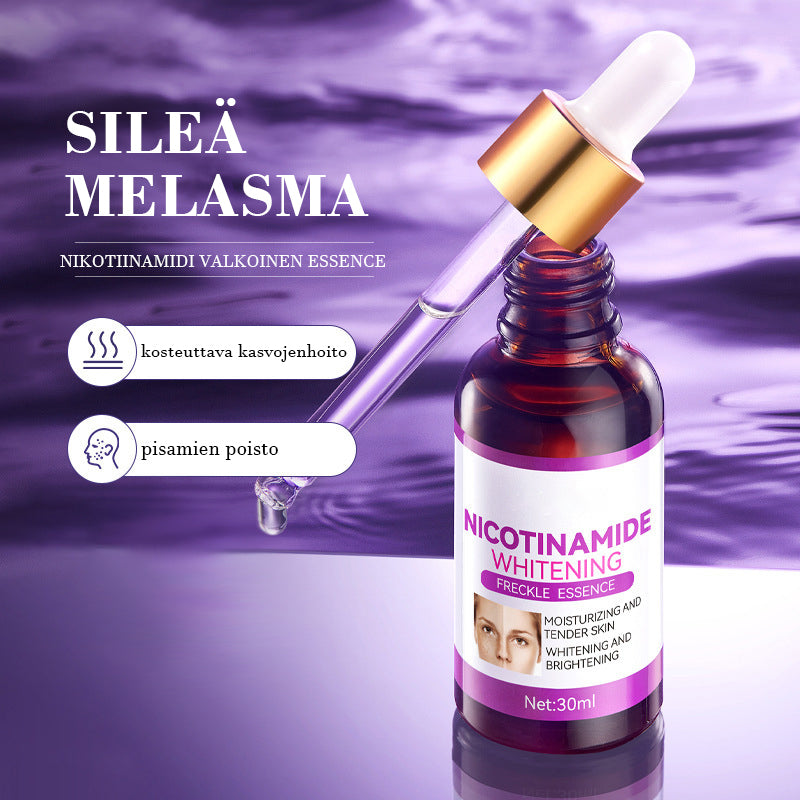 • Moniulotteinen valkaisu: Niasiiniamidi, traneksaamihappo ja kasviperäiset ainesosat toimivat synergistisesti estäen tyrosinaasin aktiivisuutta ja vaalentaen finnejä.