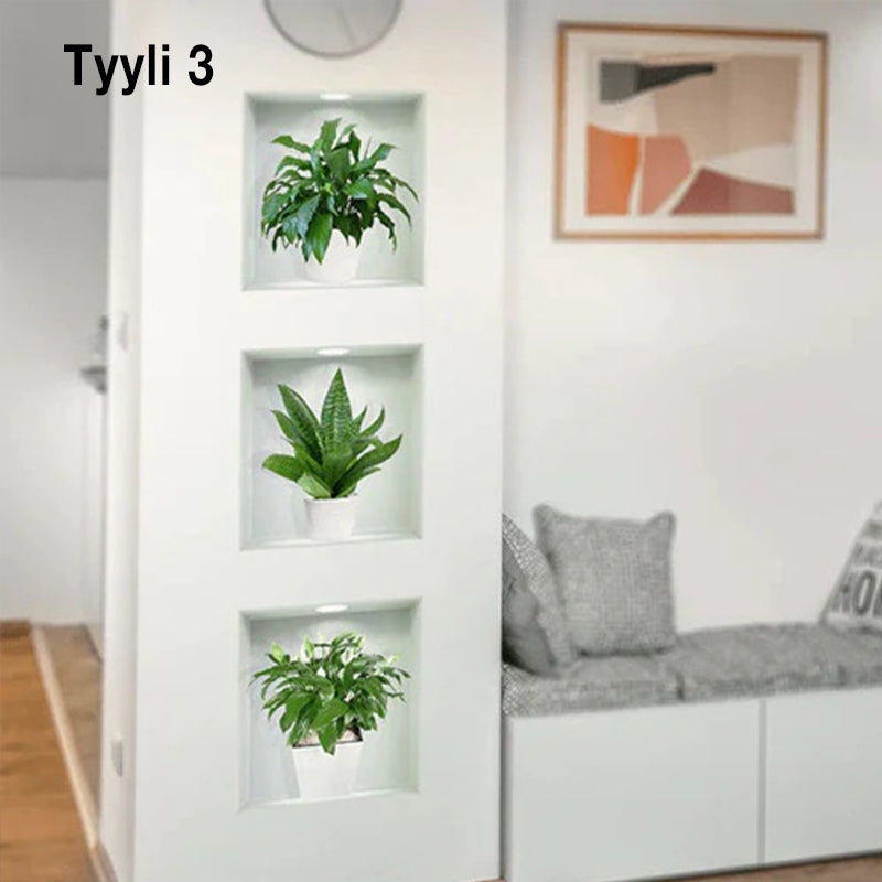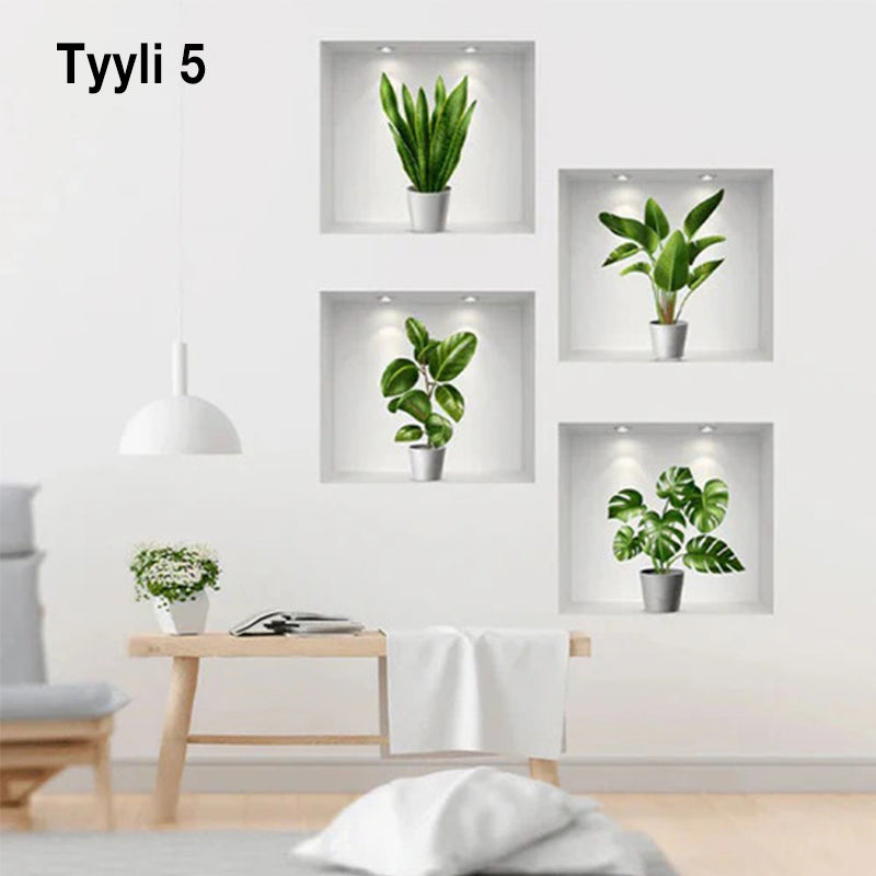 • 3/4 x Itsekiinnittyvät 3D-kasvien seinätarrat