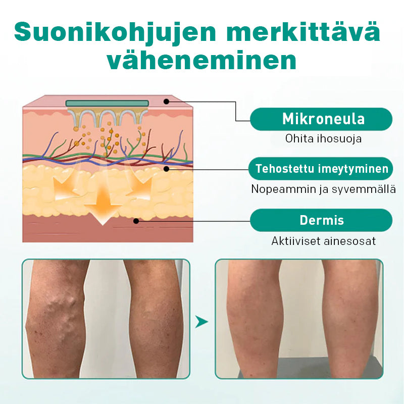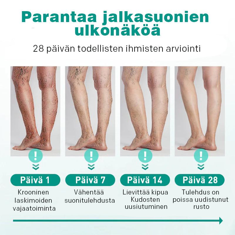 {"id":7672271536212,"title":"Paikalliset laastarit kohonneille suonille","handle":"paikalliset-laastarit-kohonneille-suonille","description":"\u003cp style=\"text-align: center;\"\u003e\u003cspan style=\"color: rgb(255, 128, 0);\"\u003e\u003cstrong\u003eParanna suonesi terveyttä ja eliminoi suonikohjut tällä turvotusta estävällä laskimolaastarilla - leikkausta ei tarvita!\u003c\/strong\u003e\u003c\/span\u003e\u003c\/p\u003e\n\u003cp\u003e\u003cimg src=\"https:\/\/cdn.shopify.com\/s\/files\/1\/0247\/5143\/9956\/files\/2_78685d3f-8c42-45de-a7a1-e12f0b3b0144.jpg?v=1745477043\" alt=\"\" width=\"479\" height=\"479\" style=\"display: block; margin-left: auto; margin-right: auto;\"\u003e\u003c\/p\u003e\n\u003cp\u003eVaricose Vein Patch on edistyksellinen, ei-invasiivinen ratkaisu suonikohjujen vähentämiseen ja yleisen suoniterveyden parantamiseen. \u003cstrong\u003eSe on täynnä anti-inflammatorisia ja antioksidanttisia ravintoaineita, jotka kiihdyttävät verenkiertoa, rauhoittavat ärsytystä ja vahvistavat suonen seinämiä ja läppäjä samalla lievittäen epämukavuutta ja turvotusta – kaikki mukavasti omassa kodissasi.\u003c\/strong\u003e\u003c\/p\u003e\n\u003cp\u003e\u003cspan style=\"color: rgb(255, 42, 0);\"\u003e\u003cstrong\u003eTodelliset käyttäjäarvostelut\u003c\/strong\u003e\u003c\/span\u003e\u003c\/p\u003e\n\u003cp\u003e\u003cimg src=\"https:\/\/cdn.shopify.com\/s\/files\/1\/0548\/8377\/8692\/files\/1_8a8e5b80-af1c-424a-ad2b-e86c4caeee39.jpg?v=1745372253\" alt=\"\" style=\"display: block; margin-left: auto; margin-right: auto;\"\u003e\u003c\/p\u003e\n\u003cp\u003e\"Olen nähnyt valtavan eron vain kahdessa viikossa!\"\u003cbr\u003e\"Olin vuosia itsetietoinen jaloistani, mutta nämä laastarit ovat muuttaneet mieleni täysin. Ne ovat niin mukavia käyttää, ja suoneni alkoivat haalistua ensimmäisellä viikolla. Olen vihdoin taas toiveikas jaloistani.\" - Lisa\u003c\/p\u003e\n\u003cp\u003e\u003cimg src=\"https:\/\/cdn.shopify.com\/s\/files\/1\/0548\/8377\/8692\/files\/2_6f26b5d6-4846-4e07-a09e-356e151fe7ed.jpg?v=1745372253\" alt=\"\" style=\"display: block; margin-left: auto; margin-right: auto;\"\u003e\u003c\/p\u003e\n\u003cp\u003e\"Lopuksi, jalkani eivät enää satu!\"\u003cbr\u003eTyöskentelen vähittäiskaupassa ja olen jaloillani yli kahdeksan tuntia päivässä. Olen hyvin väsynyt ja jalkoihini sattuu. Näiden laastarien käytön jälkeen turvotus ja kipu ovat vähentyneet merkittävästi. Lisäksi ne ovat erittäin helppokäyttöisiä – kiinnitä ne turvonneelle alueelle, niin ne toimivat. – Diane\u003c\/p\u003e\n\u003cp\u003e\u003cimg src=\"https:\/\/cdn.shopify.com\/s\/files\/1\/0548\/8377\/8692\/files\/3_18ccc879-2302-4e37-a70d-9119c481567e.jpg?v=1745372253\" alt=\"\" style=\"display: block; margin-left: auto; margin-right: auto;\"\u003e\u003c\/p\u003e\n\u003cp\u003e\"Miksi en tajunnut tätä aikaisemmin?\"\u003cbr\u003e\"Olin ennen niin itsetietoinen jalkojeni muodon suhteen, etten käyttäisi shortseja. Nyt tunnen oloni taas itsevarmaksi! Erittäin helppoa: nukun laastari päällä ja se tekee ihmeitä. Suosittelen!\" - Margaret\u003c\/p\u003e\n\u003cp\u003e\u003cspan style=\"color: rgb(255, 128, 0);\"\u003e\u003cstrong\u003eSuonikohjujen ymmärtäminen: syyt ja seuraukset\u003c\/strong\u003e\u003c\/span\u003e\u003c\/p\u003e\n\u003cp\u003eSuonikohjut ovat turvonneita, kiertyneitä laskimoita, joita esiintyy usein jaloissa ja jaloissa. Suonikohjuja esiintyy, kun suonissasi olevat pienet venttiilit, jotka ylläpitävät verenkiertoa sydämeesi, heikkenevät tai vaurioituvat. Tämä saa veren kerääntymään suonissa, jolloin ne turpoavat ja muodostavat sinertävän violetteja juovia, jotka näkyvät ihon alla.\u003c\/p\u003e\n\u003cp\u003e\u003cimg src=\"https:\/\/cdn.shopify.com\/s\/files\/1\/0247\/5143\/9956\/files\/4_7f737657-e29e-44d4-be96-057b1a9b667f.jpg?v=1745477066\" alt=\"\" width=\"480\" height=\"314\" style=\"display: block; margin-left: auto; margin-right: auto;\"\u003e\u003c\/p\u003e\n\u003cp\u003eVaikka suonikohjut saattavat tuntua kosmeettiselta ongelmalta, ne voivat aiheuttaa epämukavuutta, raskautta, turvotusta ja jopa kipua. Joissakin tapauksissa se voi myös aiheuttaa ihon värjäytymistä tai tulehdusta.\u003cbr\u003eYleisiä syitä ovat ikääntyminen, genetiikka, raskaus, hormonaaliset muutokset, liikalihavuus, pitkittynyt istuminen tai seisominen ja liikunnan puute. Naisilla on todennäköisemmin suonikohjuja, varsinkin kun he ikääntyvät.\u003c\/p\u003e\n\u003cp\u003e\u003cspan style=\"color: rgb(255, 128, 0);\"\u003e\u003cstrong\u003eSuonikohjujen oireet\u003c\/strong\u003e\u003c\/span\u003e\u003c\/p\u003e\n\u003cp\u003e\u003cimg src=\"https:\/\/cdn.shopify.com\/s\/files\/1\/0548\/8377\/8692\/files\/5_3e016002-8195-41c2-afbc-e78be810ec69.jpg?v=1745372253\" alt=\"\" style=\"display: block; margin-left: auto; margin-right: auto;\"\u003e\u003c\/p\u003e\n\u003cul\u003e\n\u003cli\u003e\n\u003cp\u003eJalkojen tai nilkkojen turvotus\u003c\/p\u003e\n\u003c\/li\u003e\n\u003cli\u003e\n\u003cp\u003eRaskaus, kipu, lämpö tai pistely jaloissa\u003c\/p\u003e\n\u003c\/li\u003e\n\u003cli\u003e\n\u003cp\u003eSuonet, jotka ovat selvästi sinisiä tai violetteja ja ovat usein kiertyneet tai turvonneet\u003c\/p\u003e\n\u003c\/li\u003e\n\u003c\/ul\u003e\n\u003cp\u003eMonet ihmiset kokevat jalkakipua, turvotusta ja väsymystä suonikohjujen seurauksena, mikä voi häiritä päivittäistä toimintaa ja heikentää merkittävästi elämänlaatua.\u003c\/p\u003e\n\u003cp\u003e\u003cspan style=\"color: rgb(255, 128, 0);\"\u003e\u003cstrong\u003eMiten suonikohjujen laastarit toimivat?\u003c\/strong\u003e\u003c\/span\u003e\u003c\/p\u003e\n\u003cp\u003e\u003cimg src=\"https:\/\/cdn.shopify.com\/s\/files\/1\/0247\/5143\/9956\/files\/7_dcaa0f73-8192-49e8-9160-67205c8d0372.jpg?v=1745477043\" alt=\"\" width=\"480\" height=\"480\" style=\"display: block; margin-left: auto; margin-right: auto;\"\u003e\u003c\/p\u003e\n\u003cp\u003eSuonikohjulaastari käytt