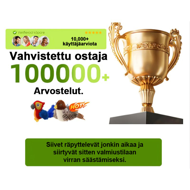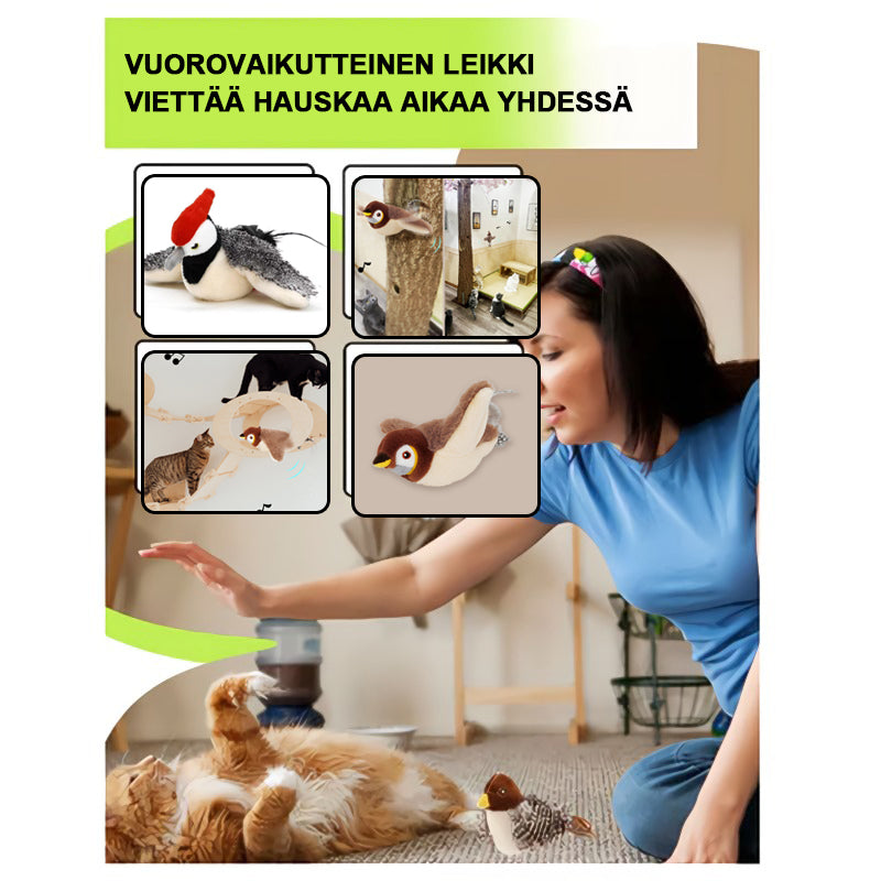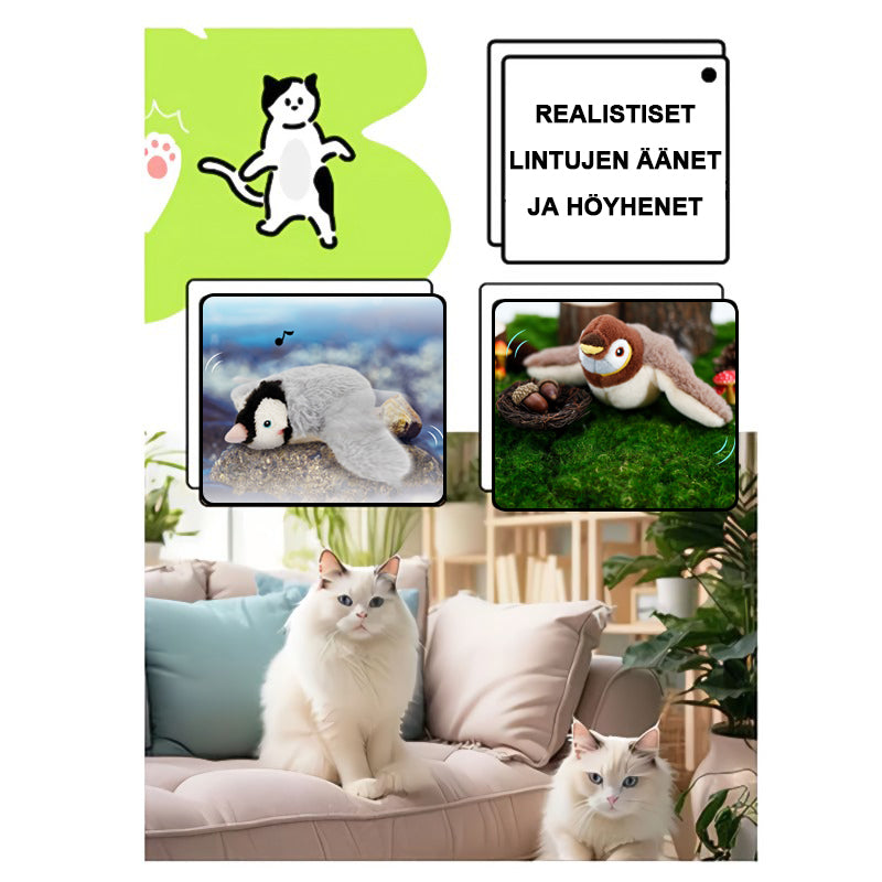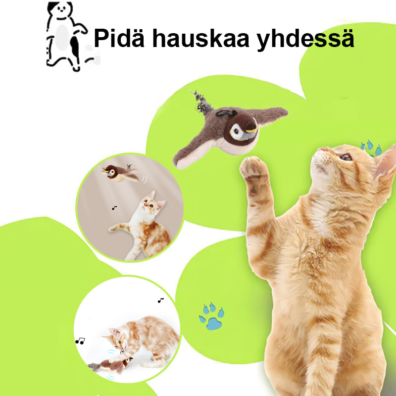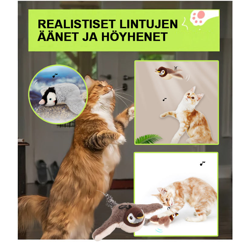 Simuloitu sähköinen lintukissalelu, jossa räpyttelevät siivet